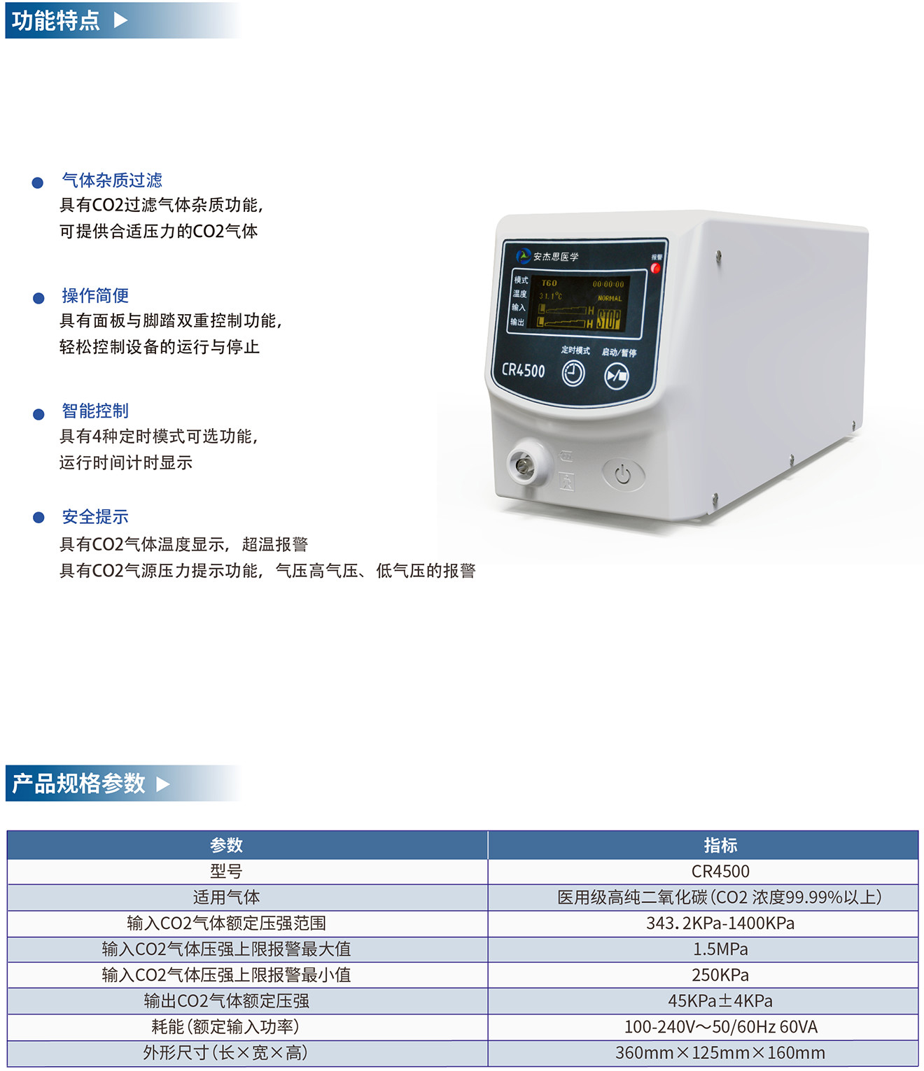 適用范圍:產品用于注入二氧化碳氣體,送氣僅適用于上、下消化道。
